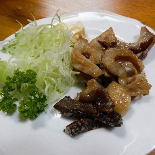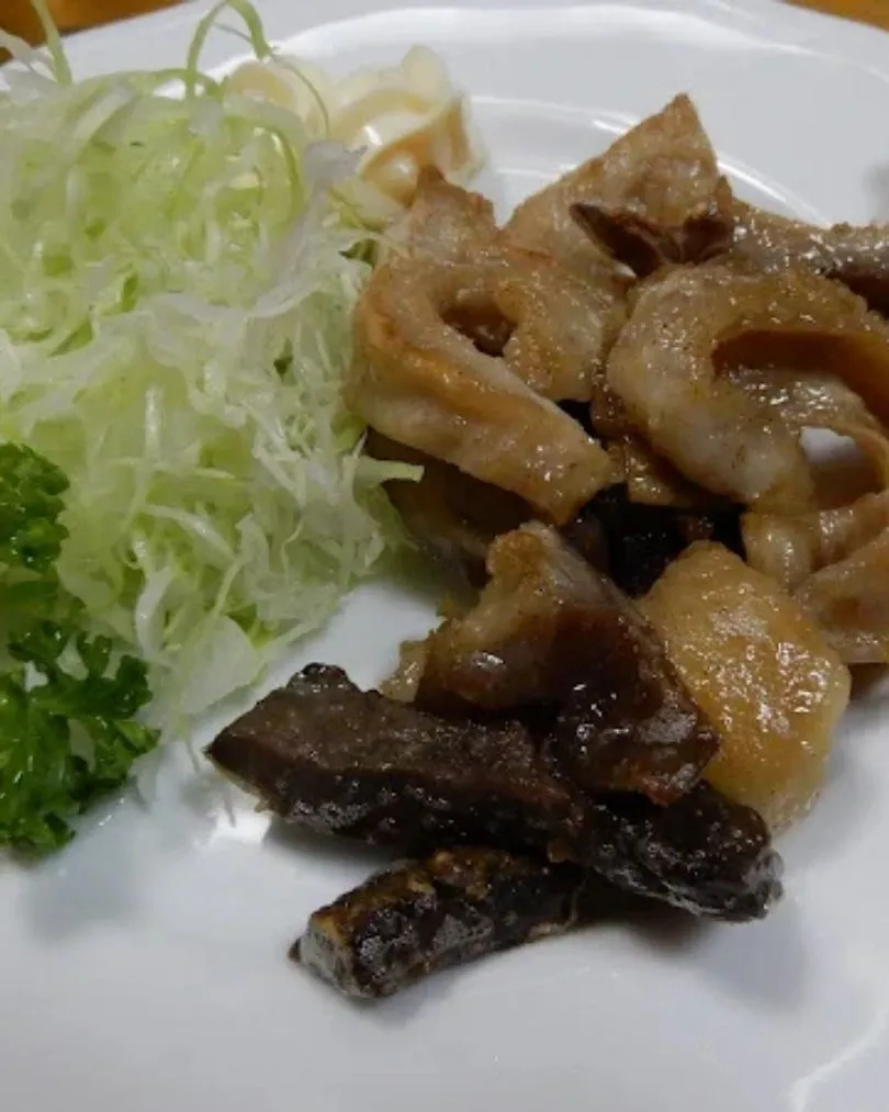 徳島ではおなじみのイリカス。牛の内臓系の肺と腸を炒めたものです。